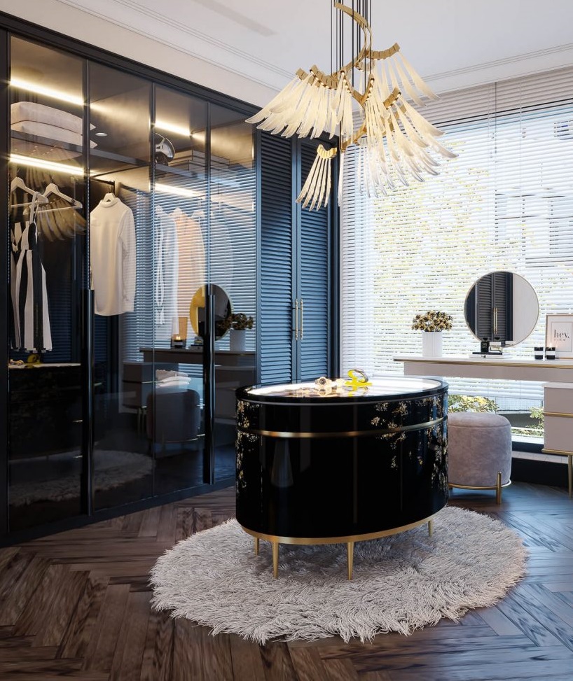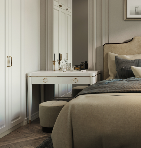 Với phòng ngủ master có khu vực wardrobe riêng biệt, bàn console là chọn lựa lý tưởng. Hãy tưởng tượng bạn trong căn phòng. Sau khi chỉn chu với trang phục và phụ kiện, bạn tiến đến bên chiếc console table và hoàn thành outlook bằng một trong số bộ sưu tập nước hoa của mình. Quá chill!