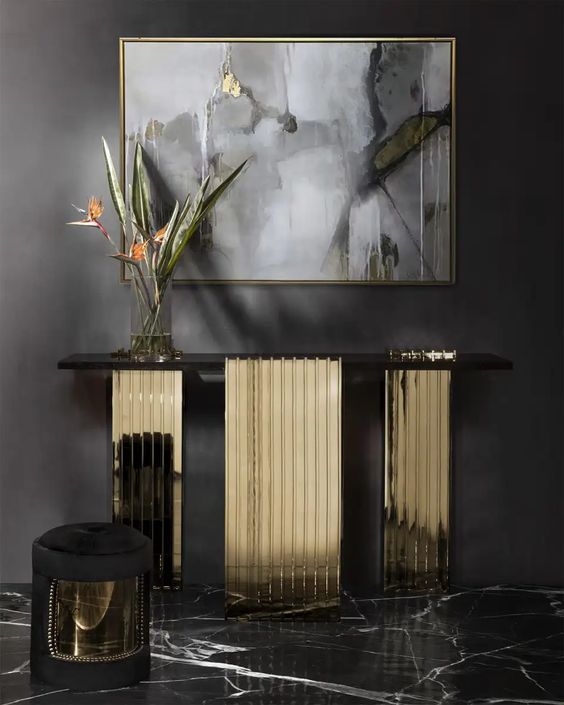 Nếu phần hành lang và lối đi đủ rộng, vì nguyên do gì mà không làm gì khác biệt? Bạn hoàn toàn rất có khả năng lưu ý đến đặt một điểm nhấn tại đây. Còn gì tuyệt vời hơn một chiếc bàn console mỏng manh với vài decor đẹp mắt?
