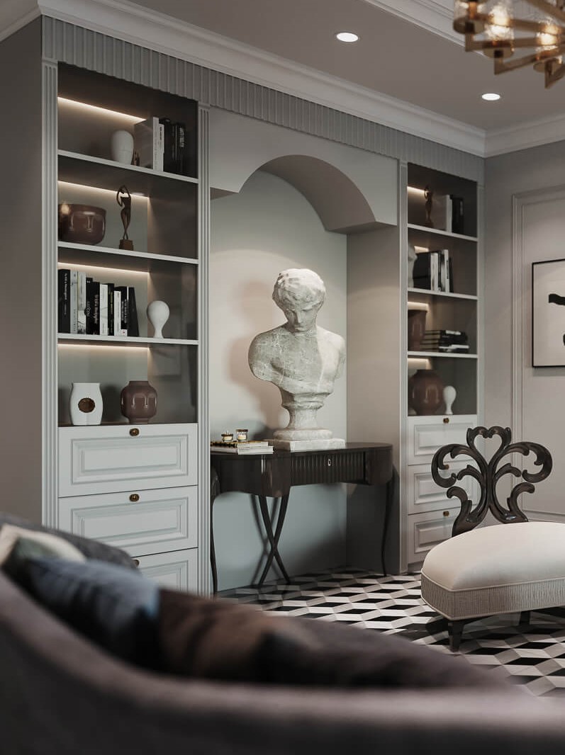 Đúng với mục đích là trang trí và làm đẹp cho không gian, không xảy ra gì thấy bất ngờ khi phòng khách là nơi phổ biến nhất để đặt console table. chủ sở hửu rất có khả năng đặt tượng trang trí, sách hay các giải thưởng của chính bản thân tại đây. Tranh ảnh gia đình cũng thường được trưng bày, giúp không gian trở nên ấm cúng và thân mật hơn.